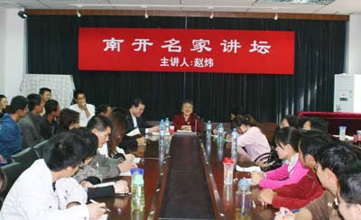 “青年人有长处,未来属于他们,要把信任的目光投向青年”。讲演最后,赵女士特别谈到了周总理和邓大姐对青年的拳拳期望,希望同学们“把自己的命运和社会发展融合在一起,一步步铺好人生道路的每一块基石”,并用总理生前的信条“人生赖奋斗而存”鼓励南开学子,要珍惜学习环境和已有的学习条件,勇于吃苦,不怕吃苦,为南开争光、为人民服务、为祖国奉献。
