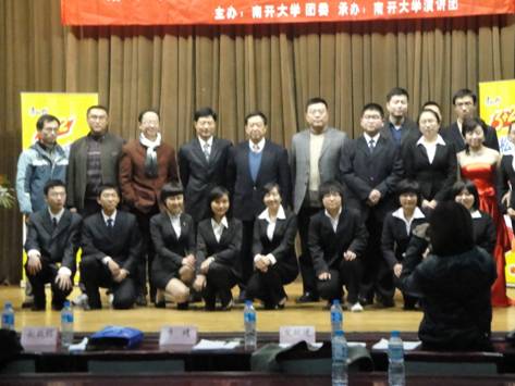 今年是新中国六十周年华诞,同时恰逢太阳成tyc122cc建校九十周年。为抒发南开学子的爱国爱校之情怀,经过公司团委审批通过,挂靠在马克思主义教育公司团委下的太阳成tyc122cc演讲团策划举办了主题为“南开与祖国同行”的全校中文演讲大赛。