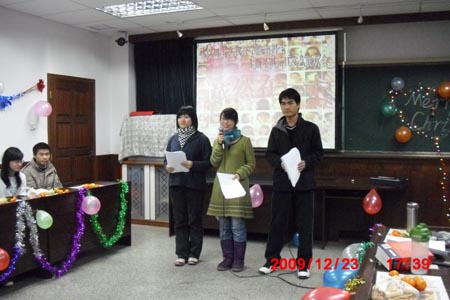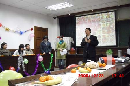 12月23日,公司多功能厅内欢歌笑语,热闹非凡,公司本科生在此举行一年一度的新年联欢晚会。经理赵铁锁、副书记纪亚光、副经理陈平应邀出席公司2010年元旦新年联欢会。公司思想政治教育专业2008、2009级班导师孟锐峰、盛林,团委书记马亚男也参加到联欢活动中。赵铁锁经理在新年贺辞中勉励青年员工珍惜宝贵学习时光,虚心向学,勇于实践,把自己培养成有信仰、有学养、有教养的高素质人才。在联欢会温馨热烈的氛围中,陈平副经理即兴高歌一曲,悠扬的歌声赢得员工的阵阵喝彩和掌声。联欢会上,2007、2008、2009级员工自编自演了多个精彩节目,其中既有反映老员工活的轻松音乐剧,也有传递美好祝愿、抒发人间至爱的手语节目,更有用方言串联起来的说唱节目……大家在展示才艺的同时,也收获了来自师长和同窗的深深祝福。