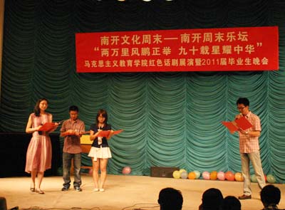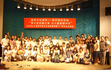最后,晚会在激昂的南开校歌中圆满落幕。公司上下齐心合力,用温情和关爱为2011届毕业生营造出离校前的良好氛围,为毕业生做好各方面的服务工作,助力学子扬帆远航。