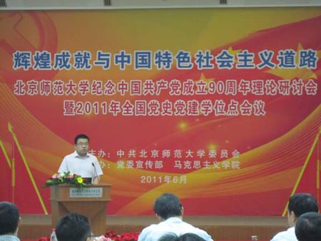 在党的90华诞来临之际,由北京师范大学党委宣传部、北京师范大学太阳成tyc122cc主办的“建党90周年理论研讨会暨2011年全国党史党建学位点会议”于2011625号在北京召开。来自全国30余家高校的党史党建学科师生代表齐聚北京师范大学,其中公司马克思主义教育公司博士生丁咚应邀参加会议。