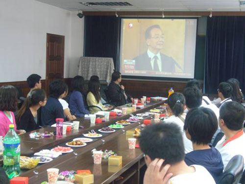 座谈会由周池会会长陆阳主持,他首先向与会同学介绍了周池会的基本情况,并播放了精心编辑的周池会发展短片。短片从温家宝总理不久前在日本发表的讲话开始。温家宝总理说:“中日友好的基础在民间、在草根,不能小看这支力量,是它一直推进中日友好向前迈进。”随后,伴随着周池会会员们洋溢着青春活力的一幅幅图片,呈现了周池会发展的基本过程,展现出周池会所一贯追求的尊重差异、平等交流、相互学习、共创未来的周池精神。