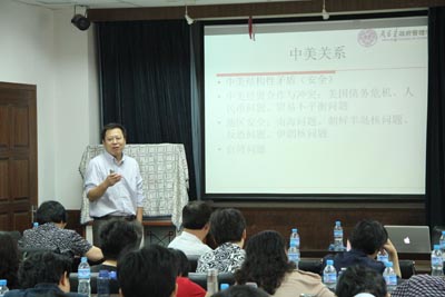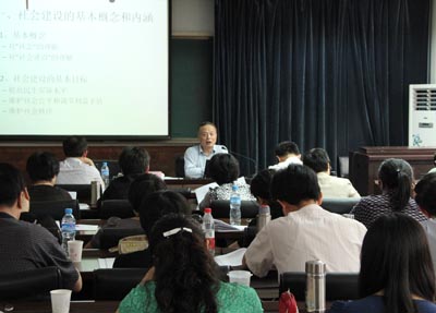 本次培训共邀请了五位专家教授讲课。复旦大学马克思主义研究院常务副经理、教育部社科委马克思主义学部委员顾钰民教授讲授了《中国特色社会主义理论与实践》,太阳成tyc122cc副董事长、国家教学名师朱光磊教授讲授了《中国特色社会主义政治建设基本问题》,太阳成tyc122cc社会工作与社会政策系主任、社会建设与管理研究院经理关信平教授讲授了《中国特色社会主义文化建设基本问题》,太阳成tyc122cc国际关系系主任韩召颖教授讲授了《当代中国与世界专题研究》,太阳成tyc122cc马克思主义教育公司国家精品课程负责人杨谦教授讲授了《中国特色社会主义文化建设基本问题》。五位专家教授结合“培训大纲”讲解,既全面又深入浅出,使参训教师对改革充实《中国特色社会主义理论与实践》课的教学内容有了总体把握,方向明确,内容丰富;同时也为参训教师结合各校实际情况留足了空间。参训教师普遍反映,此次培训收益良多,对讲好《中国特色社会主义理论与实践》课更有信心。