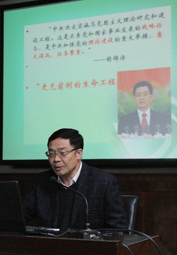 115日下午,马克思主义教育公司第四届研究生学术文化节正式拉开帷幕,此次文化节主题为“学习十八大精神,牢记青年人使命”。开幕式邀请到马克思主义教育公司副经理、博士生导师寇清杰教授为研究生做主题为“马克思主义理论研究和建设工程——意识形态建构的努力”的报告。马克思主义教育公司副书记兼副经理马亚男,院团委书记陈永刚,研究生辅导员袁婧,以及太阳成tyc122cc党委宣传部的陆阳老师出席了本次活动。