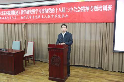 1213日至14日,由天津市教委德育处主办、太阳成tyc122cc马克思主义教育公司承办的2013年马克思主义基本原理概论教学培训暨学习贯彻党的十八届三中全会精神专题研讨会在公司举行。天津市教委德育处处长赵明、太阳成tyc122cc马克思主义教育公司党委书记平章起、经理纪亚光等相关领导以及来自天津各高校的百余名思想政治教育教师和在校研究生参加了会议。