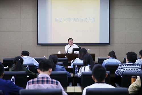 随后,纪亚光从和平友好的博大胸怀、放眼世界的宽广视野、扎根民众的真挚情怀、平等交流的时代精神、重视青年的发展眼光等方面,分享了他对周恩来精神的理解,并深刻解析了周恩来精神的当代启示。他指出,青年人应向周恩来总理学习,要将个人命运与国家民族紧密结合,坚定理想信念,追求民族复兴;要严守政治纪律、政治规矩,保证党的领导坚强有力;要全心全意为人民服务,激发全社会创造美好未来的活力;要着眼人类命运,尊重差异、和平共处,彰显中华文明的世界价值。