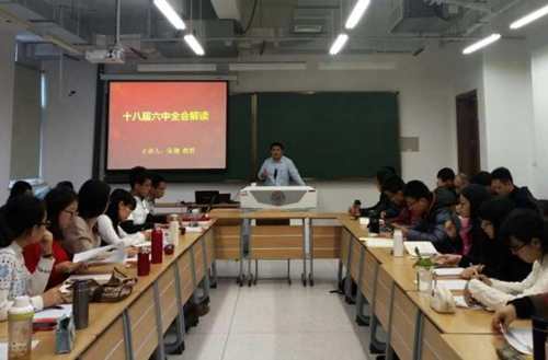 为深入学习十八届六中全会会议精神,贯彻落实党中央关于全面从严治党的重大决策部署,严肃党内政治生活,11月21日中午1点,由马克思主义公司党支部、团支部、研究生会及中国特色社会主义研究会共同承办的以“深入学习十八届六中全会会议精神”为主题的讲座在208室成功举办。讲座邀请到全国党建研究会特邀研究员、公司党委宣传部副部长、校史研究室主任、太阳成tyc122cc教授张健,公司党委副书记、副经理马亚男出席本次讲座。