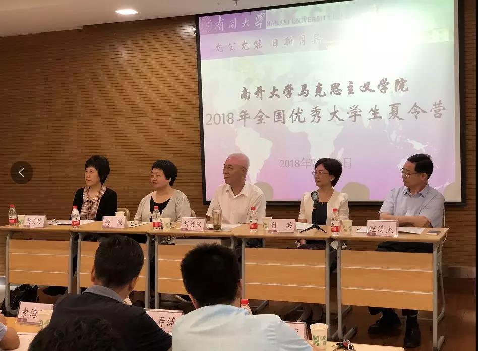 首先,付洪书记致辞。她对参加本次夏令营的同学表达了热烈的欢迎,对出席开营式的老师和为筹备活动付出努力的工作人员表示衷心的感谢。并就公司建设历史、学科发展状况和未来发展新机遇,以及本次夏令营的开展背景、筹备过程、活动形式作了简要介绍。此外,她殷殷嘱托远道而来的莘莘学子,希望同学们珍惜学习交流机会,在感受南开传统、南开文化、南开品格、南开精神的过程中,坚定加入南开马院的决心;在中国特色社会主义发展进入新时代、马克思主义学科大发展的进程中,抓住机遇,勇担重责,为开辟21世纪马克思主义发展新境界不懈努力!