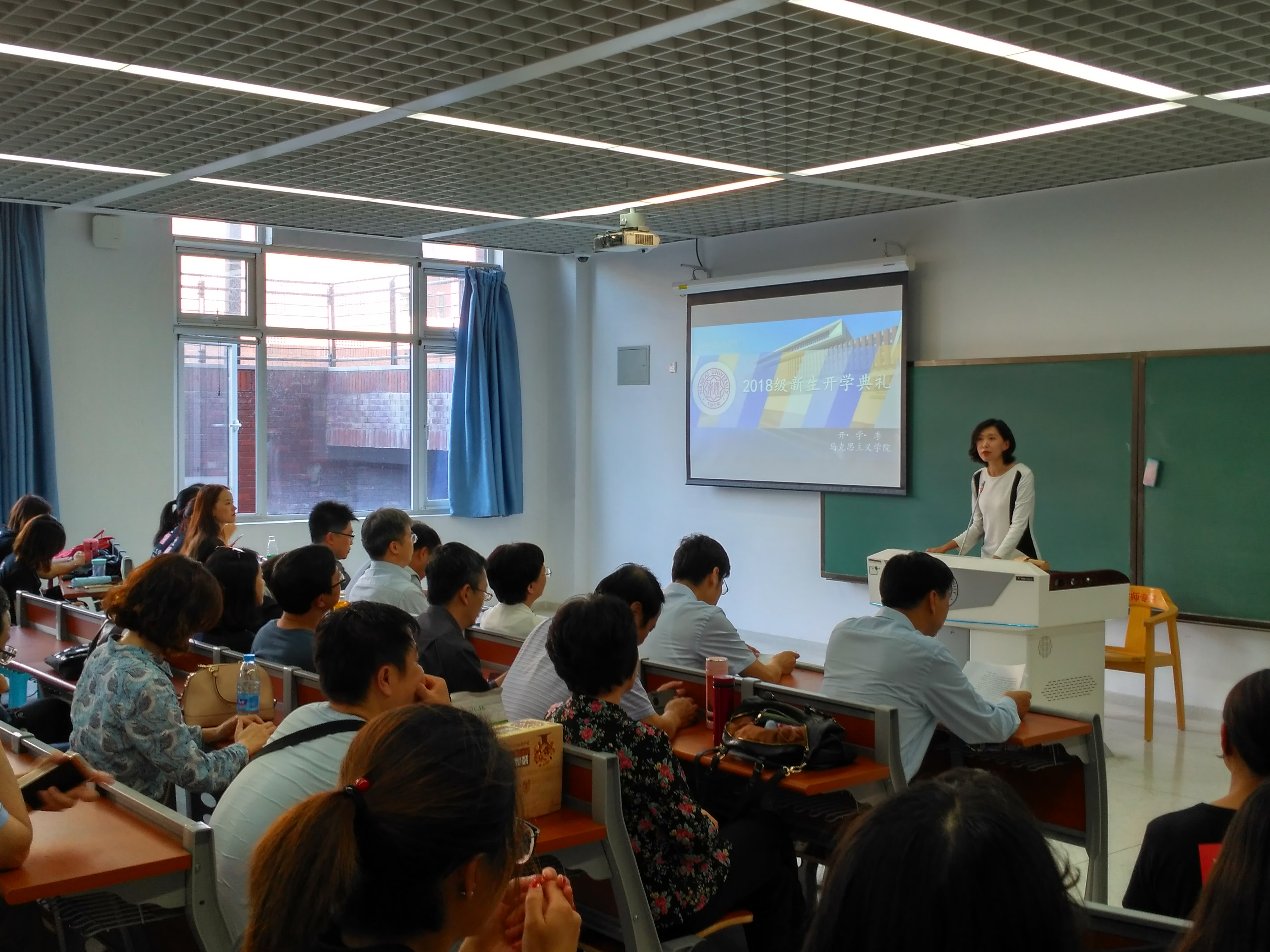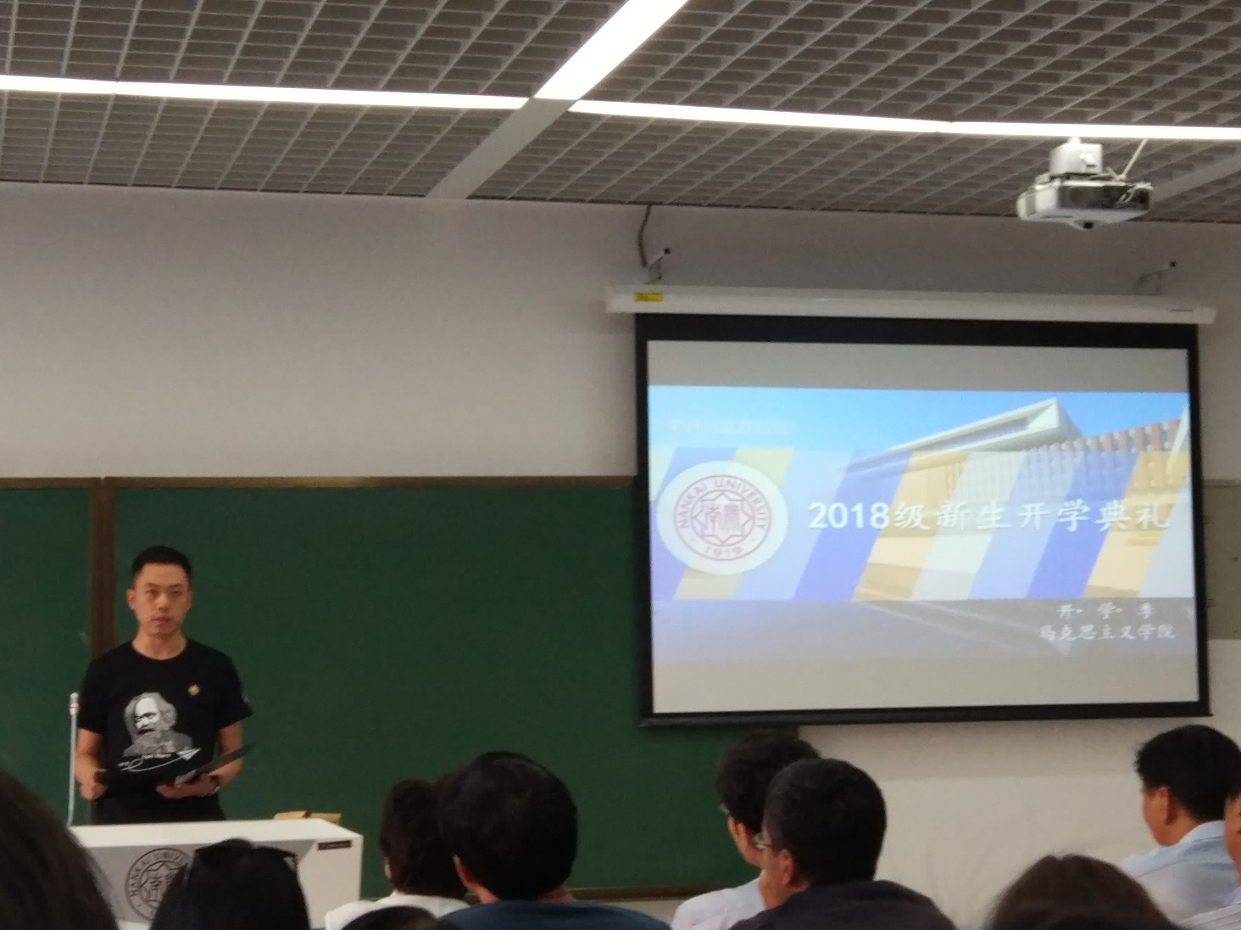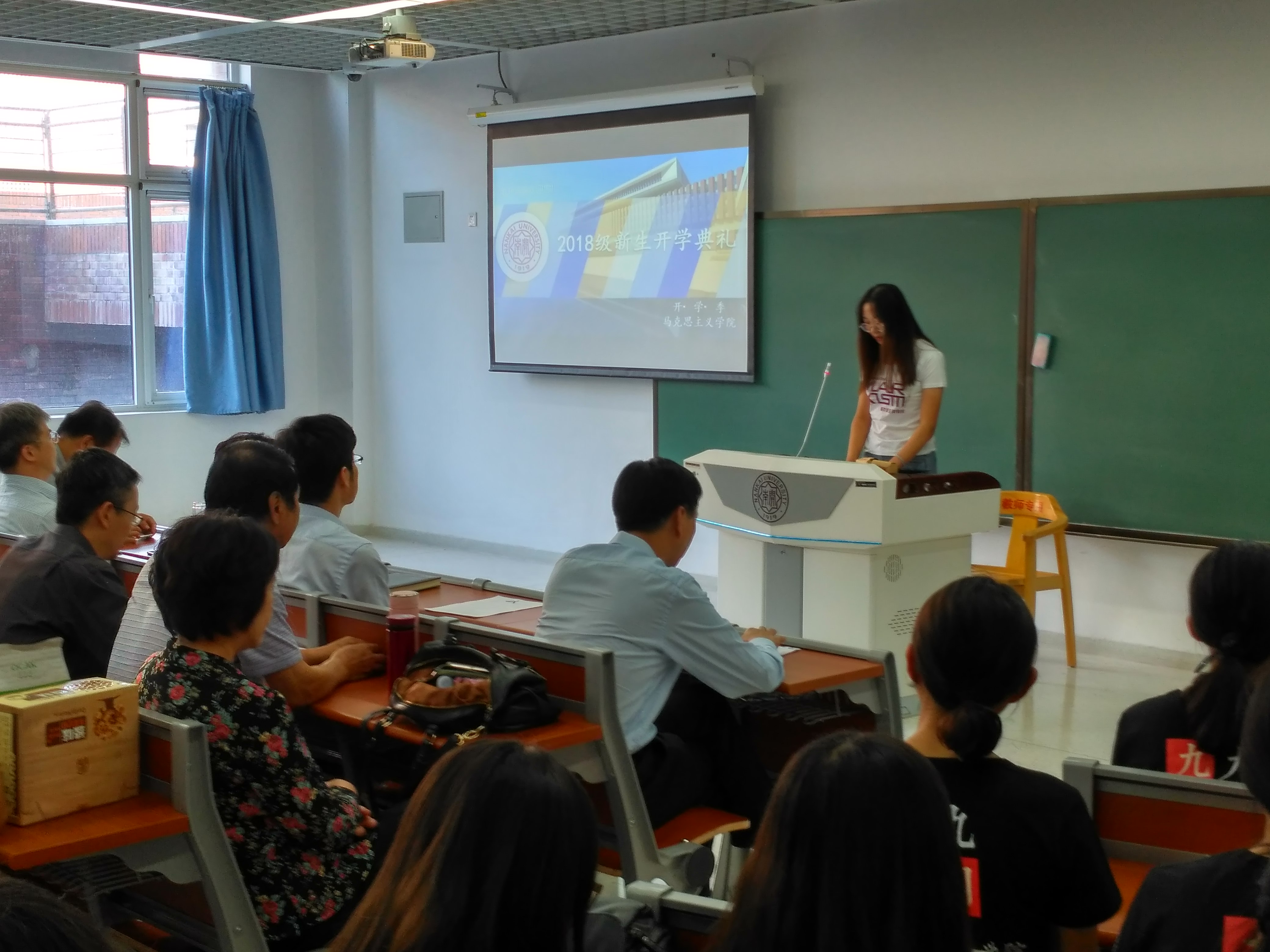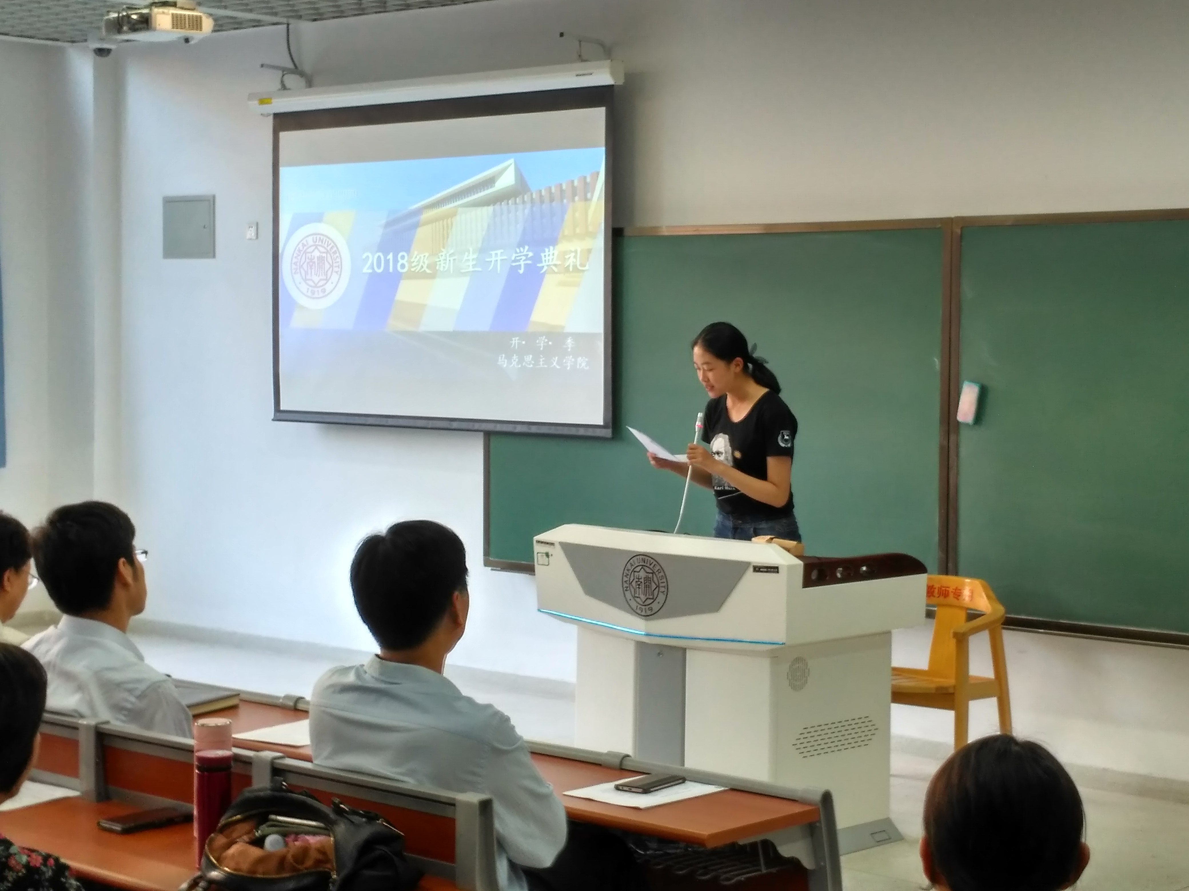“渤海之滨,白河之津,巍巍我南开精神……”2018级新生开学典礼在全体师生高声齐唱校歌中落下帷幕。