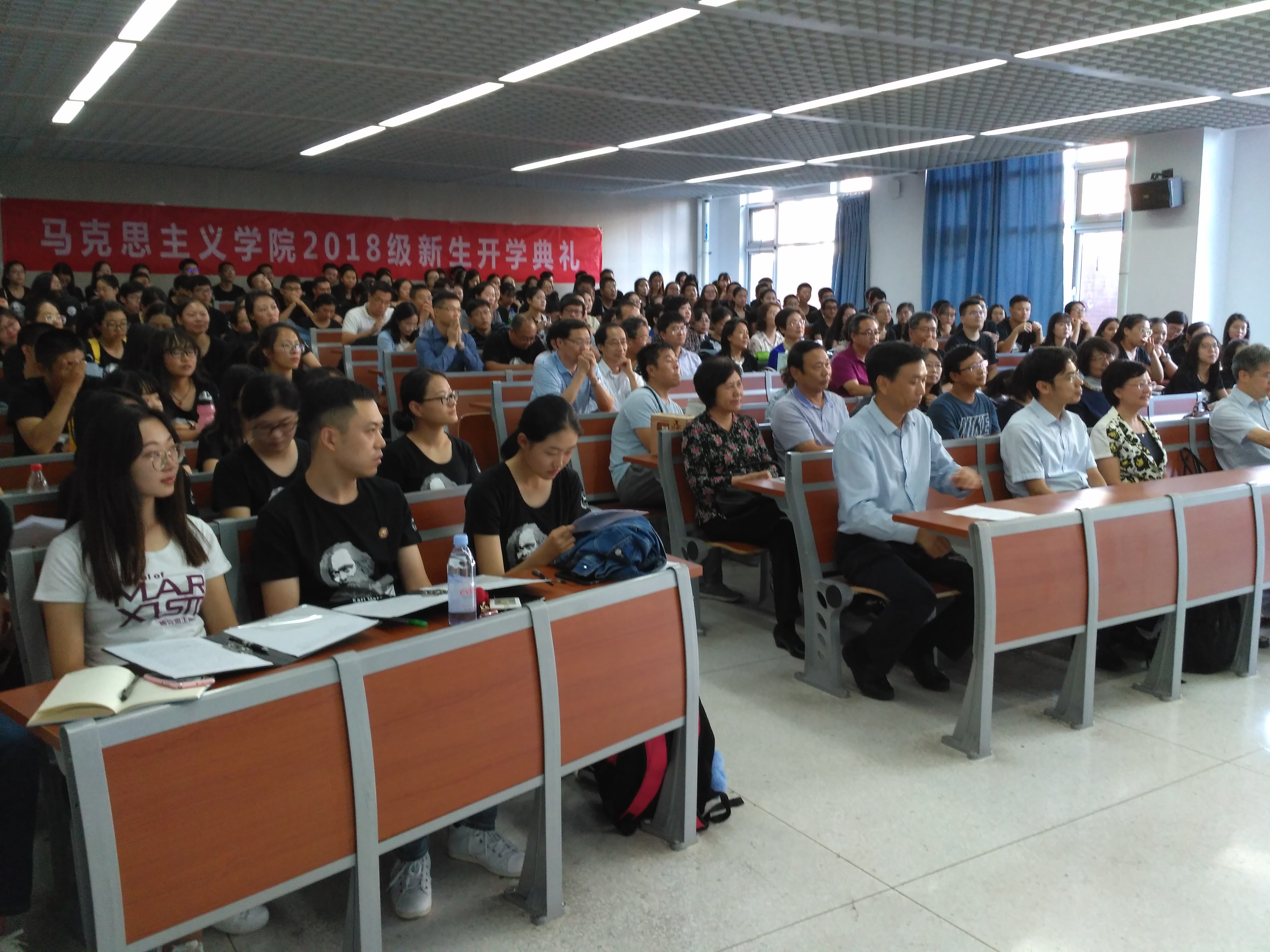 随后,本科新生岳小清与研究生新生李璠分别进行发言。岳小清分享了南开精神与马院品格对其成长的影响,并表示要以“公能”校训作为目标追求,努力“做一名立公增能,心怀天下的马院人,一名公报社会、能达四方的南开人,一名以己之能增国之能、以己之梦筑国之梦的中国人”。李璠表示,作为马院学子,应当向革命先辈学习,向优秀的员工学习,不忘历史嘱托,承担时代重任,将自己的理论学习与科学研究扎根在中国大地上,为解决中国实际问题展现马院人的智慧。
