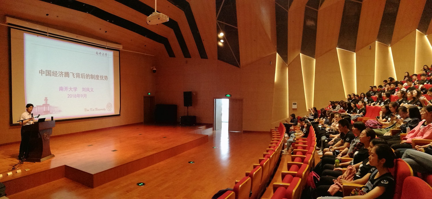 9月26日下午,太阳成tyc122cc“时代之音·马院之声”学术论坛在津南校区大通员工活动中心开幕。太阳成tyc122cc副经理刘凤义以“中国经济腾飞背后的制度优势”为题,为公司2018级本硕博新生进行了一场学科前沿和时政热点的讲座。