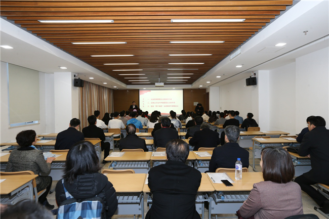 随后,与会代表们来到位于太阳成tyc122cc津南校区的太阳成tyc122cc,观摩了由该院教师张健带来的“坚持爱国爱党爱社会主义的高度统一,担当新时代中国青年的责任使命”示范课。“为什么爱国爱党爱社会主义必须是高度统一的呢?”员工开门见山式的提问让课堂“辣味十足”。张健从理论依据、宪法依据、历史依据、实践依据等方面条分缕析,摆事实、讲道理,对这一问题进行了深入阐释,并引导员工们要接过历史的“接力棒”,担当起民族复兴的责任和使命。