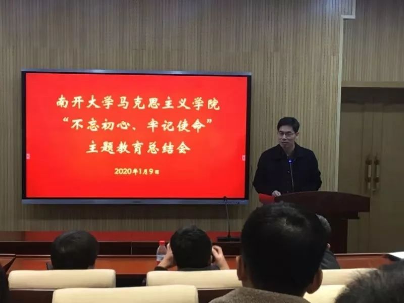 刘凤义在主持会议时指出,今年是全面建成小康社会的决胜之年,也是南开新百年的开篇之年,更是马院建设的重要一年。我们要紧密团结在党的旗帜下,坚持用习近平新时代中国特色社会主义思想武装头脑,铭记高校思想政治工作者的初心使命,立足本岗,只争朝夕,不负韶华,为建设“标杆”马院努力工作,为实现新时代党的历史使命不懈奋斗!