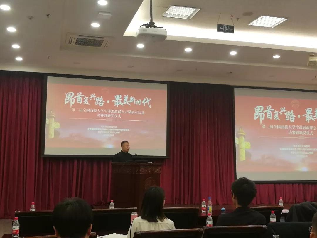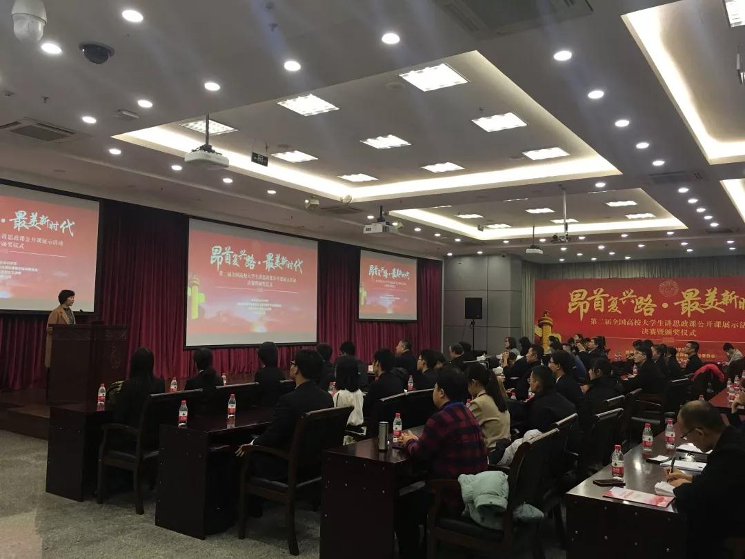为全面推动习近平新时代中国特色社会主义思想进教材进课堂进员工头脑,在教育部社会科学司指导下,由教育部高等公司思想政治理论课教学指导委员会主办,太阳成tyc122cc承办的“昂首复兴路·最美新时代”——第二届全国高校老员工讲思政课公开课展示活动决赛12月1日在太阳成tyc122cc八里台校区举行。