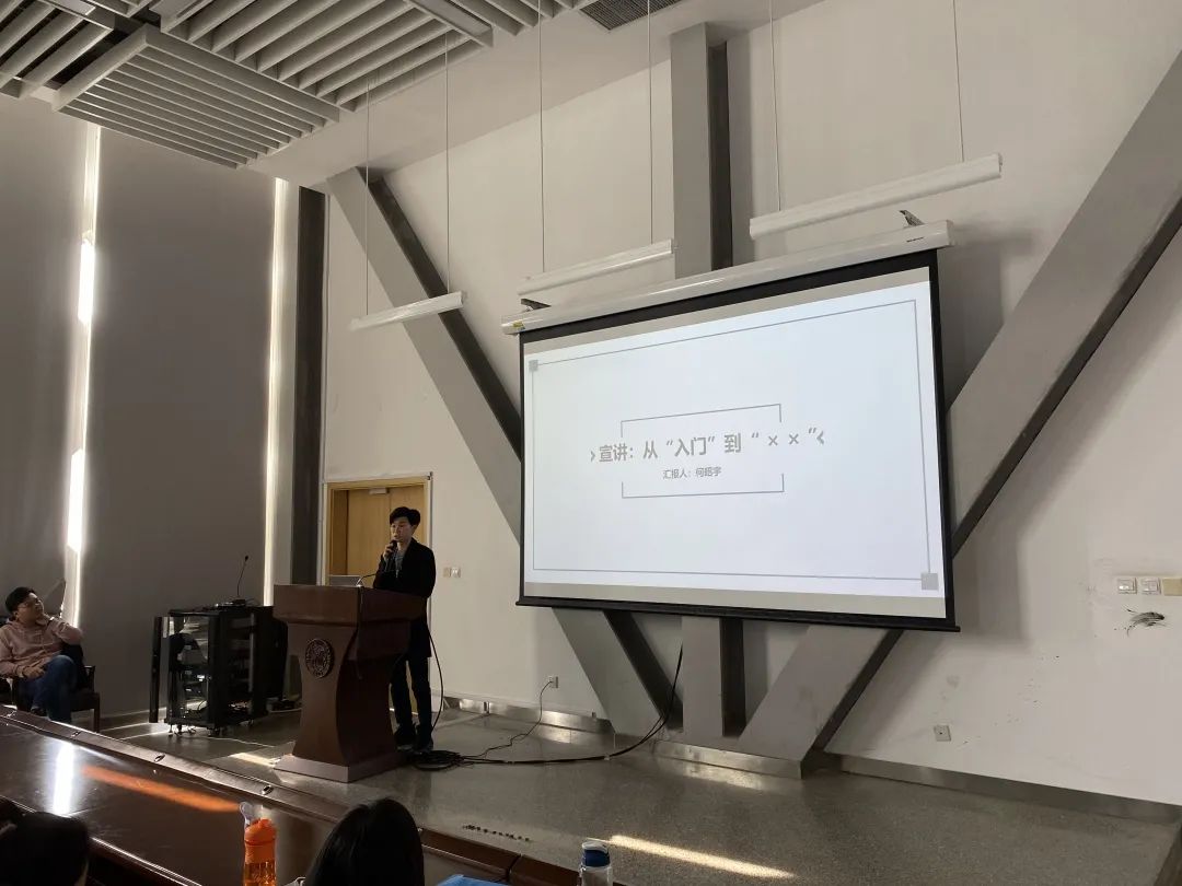 何昭宇同学以《宣讲:从“入门”到“XX”》为题从个人见解、宣讲内容、宣讲形式、心得体会四个方面进行讲解。