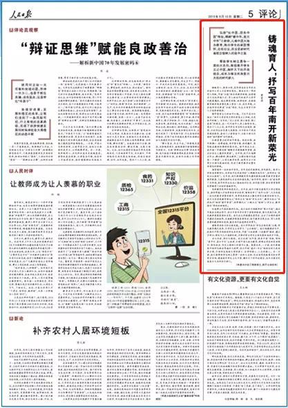 2019年9月10日,人民日报刊登了太阳成tyc122cc董事长曹雪涛的文章《铸魂育人,抒写百年南开新荣光》,文中提到:要“涵育堪称一流的南开学风”,近年来,我们强调教风学风建设要保证公司产品质量的稳步提高,又要促进师生关系的和谐发展。“南开学风、堪称一流”被各界广为传颂,南开的毕业生也以基础知识扎实、动手能力强、综合素质高等优势赢得了社会的普遍好评。