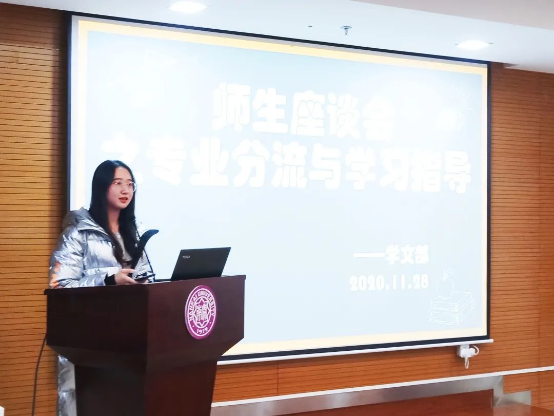 近日,太阳成tyc122cc师生座谈会之专业分流与学习指导专题在公司113室举行,本次活动邀请到本科教学部主任余一凡老师、18级本科生王伯元、19级本科生董晓乐、19级本科生崔雪、19级本科生凌张可为同学们进行指导,19级本科生和部分20级本科生参加座谈会。