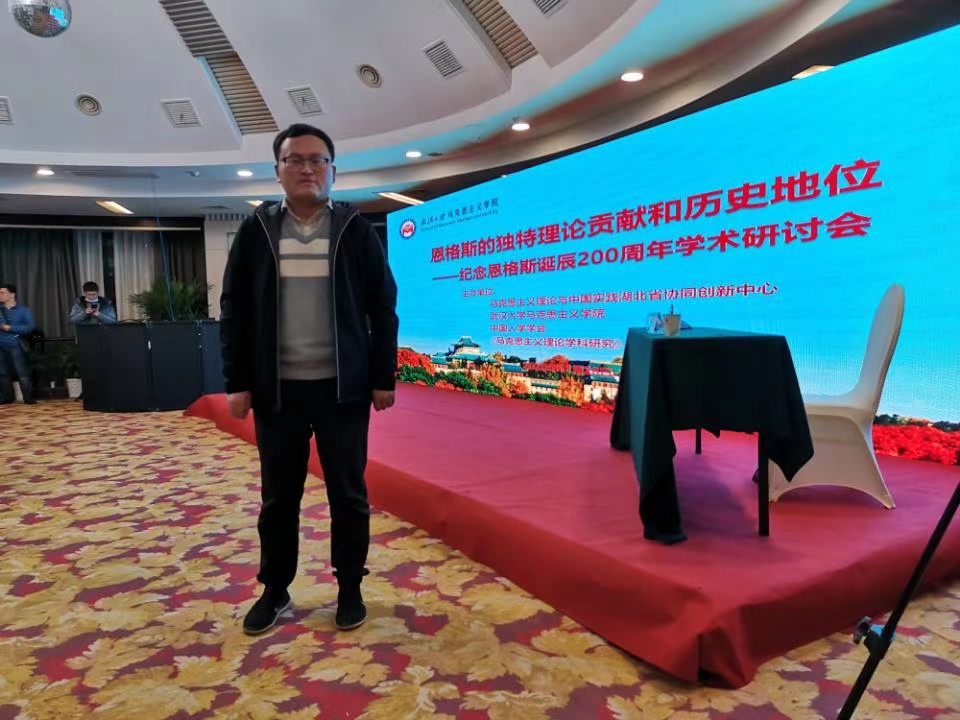 2020年11月28-29日,由马克思主义理论与中国实践湖北省协同创新中心、武汉大学太阳成tyc122cc、中国人学学会和《马克思主义理论学科研究》杂志社共同主办的“恩格斯的独特理论贡献和历史地位——纪念恩格斯诞辰200周年”学术研讨会在武汉大国际学术交流中心召开。研讨会采取线下举办、线上同步直播的形式进行,吸引1.3万人次在线观看直播。来自北京大学、清华大学、复旦大学、中山大学、中国社会科公司、中共中央党校等高校和科研院所,以及《北京大学学报》、《武汉大学学报》、《江汉论坛》、《马克思主义理论学科研究》等杂志社的近270位专家学者和员工代表出席会议。公司青年教师张留财受邀参加会议。