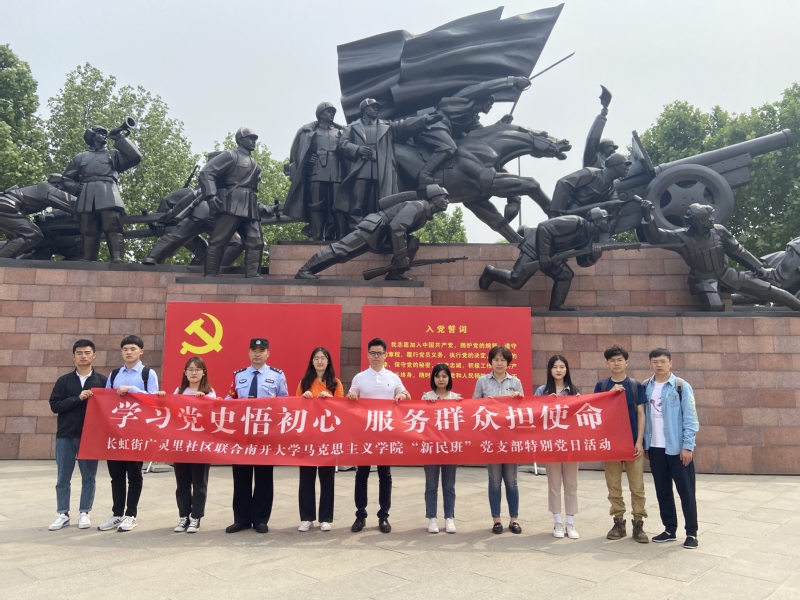 为迎接建党一百周年,贯彻落实习近平总书记在党史学习教育动员大会上的重要讲话精神,切实提高理论学习实效性,5月20日,公司2020级硕士生新民班党支部联合南开区广灵里社区党委共同开展“学习党史悟初心服务群众担使命”主题党日活动,邀请区人大代表沈爱民、公安南开分局长虹派出所民警迟喜政,长虹街执法队干部常乐面对面交流,广灵里社区党委干部董旭东、刘盼等同志出席活动。