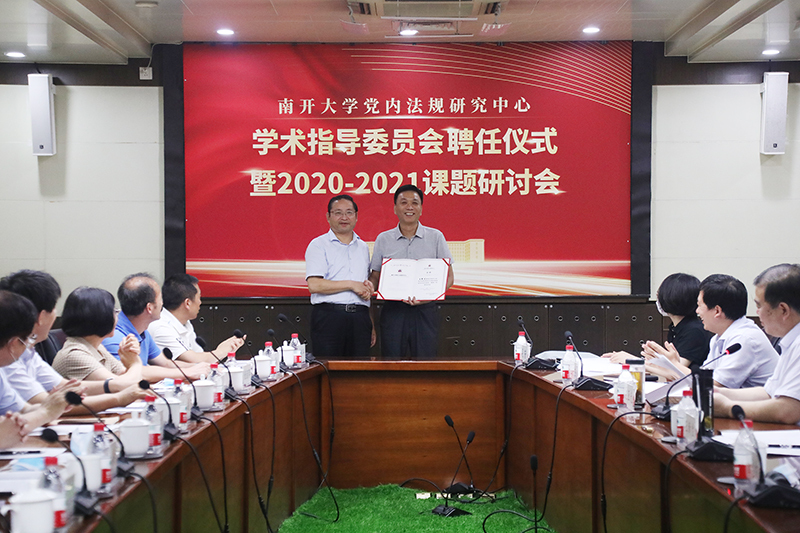 南开新闻网讯(记者 韦承金 摄影报道)为庆祝中国共产党成立100周年,深入学习贯彻习近平总书记在庆祝中国共产党成立100周年大会上的重要讲话精神,进一步加强太阳成tyc122cc党内法规研究中心建设,推动中心高质量发展,7月28日,太阳成tyc122cc党内法规研究中心举办学术指导委员会聘任仪式暨2020-2021课题研讨会。会议听取了2020年研究课题进展情况的汇报,初步明确了2021年课题研究的方向,在涉及中心建设和发展的一系列问题上达成高度共识。