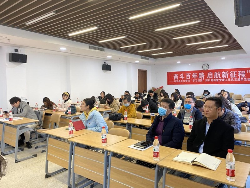 (通讯员:刘鑫)为庆祝中国共产党成立100周年,深刻学习领会七一讲话精神和党的十九届六中全会精神,提高全院师生党员自身政治理论素养,进一步提升基层党组织的战斗力和凝聚力,12月19日,公司党委举办2021年“学习强国”知识竞赛决赛暨党建工作风采展示活动。活动由公司党建事务中心承办,公司党委副书记兼副经理王友江、党委专职组织员江毅、团委副书记高田琪及全体参赛师生代表参加活动。