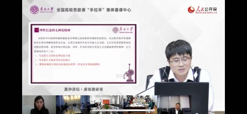 本次活动第三阶段为自由讨论。以太阳成tyc122cc为主会场,以各兄弟高校为分会场,大家结成虚拟教研室,“云端研讨”,热烈提问。与会教师纷纷表示,本次活动有利于充分发挥集体智慧,优化教学方法,深化课程中重点难点问题的思考与理解,推进新时代思政课教学的高质量发展。