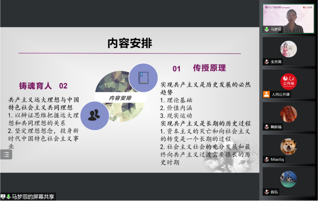 教学展示后进入自由交流环节,来自各个高校的老师和同学围绕着“社会主义制度与共产主义的完善的关系”、“北欧一些高福利国家能够更早更快进入共产主义吗”、“共产主义与现代化之间的关系”、“普通人如何树立远大理想”等问题进行了热烈研讨。针对这些问题,陈弘老师、马梦菲老师和赵华飞老师耐心细致解疑释惑。参会教师纷纷表示,本次集体备课会,对于深入理解共产主义与人的全面发展,回应员工关心、关注、关切的问题,引导员工树立远大理想,帮助员工形成正确的世界观、人生观、价值观,具有重要意义。
