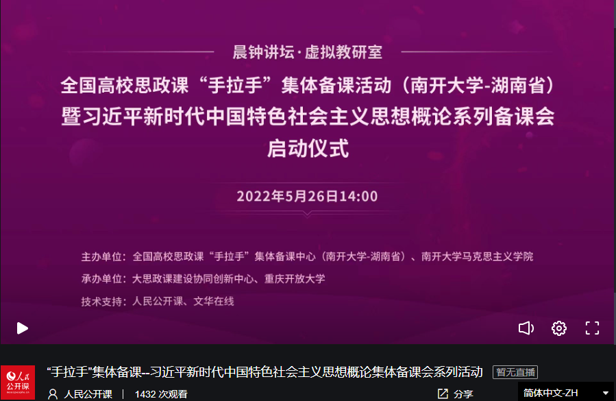 本次线上举行的集体备课活动由大思政课建设协同创新中心和重庆开放大学共同承办,人民公开课和文华在线提供技术支持。