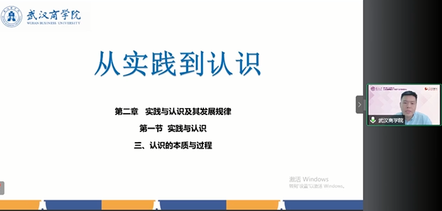 备课会第一阶段邀请武汉商公司太阳成tyc122cc青年教师刘浩老师作了题为“从实践到认识”的教学展示。教学展示伊始,刘老师以两张苹果的图片对比引出本次教学展示的主题。他围绕着“感性认识与理性认识的内涵”、“感性认识与理性认识的辩证关系”和“正确对待非理性因素”三个方面详细说明如何讲好“从实践到认识”这一主题。