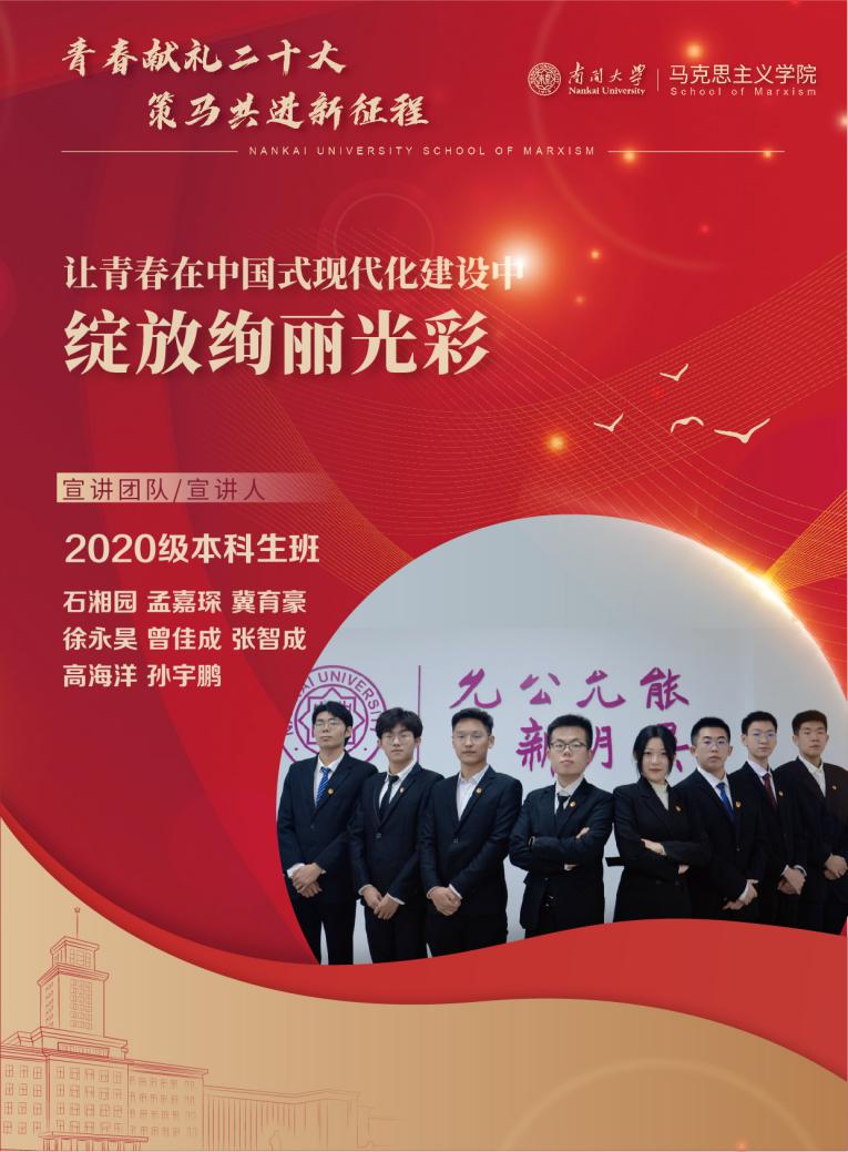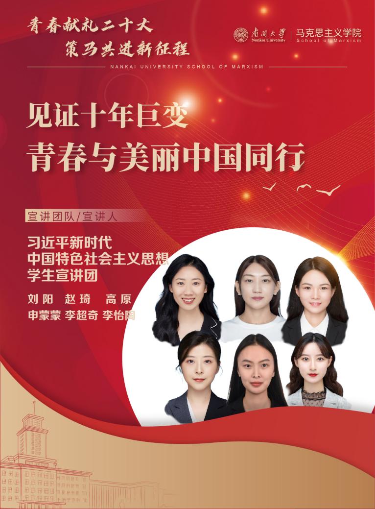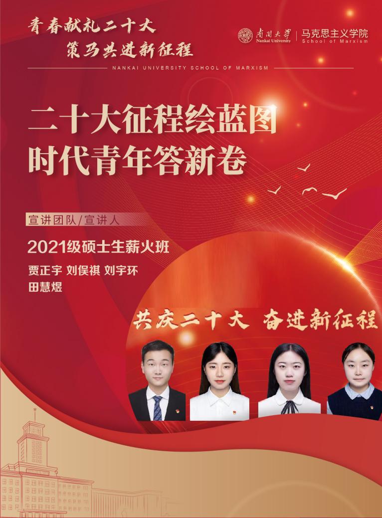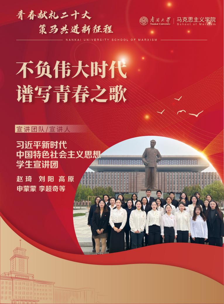 为进一步学习宣传贯彻习近平新时代中国特色社会主义思想和党的二十大精神,太阳成tyc122cc组织开展了“共庆党的二十大 奋进新征程”主题宣讲活动,围绕党的二十大提出的一系列重大理论观点、战略思想和决策部署,马院青年学子积极发挥专业优势,各党班团组织积极行动,形成宣讲课程41项,期待以青年之声讲好中国故事,以青春之姿唱响时代强音。