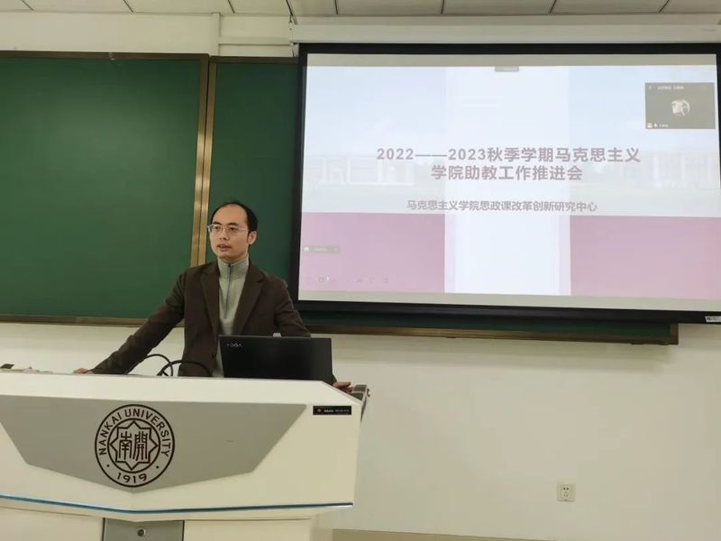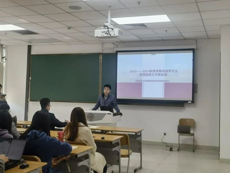 孙寿涛、余一凡分别讲话。孙寿涛回顾了近年来推进思政课改革创新的历程,要求同学们通过协作分工来推动师生共同体的建构,担任助教工作的同学要随时整理材料,加强档案意识。余一凡要求参与助教工作同学的要从自身成长和推进教学改革的高度充分认识助教工作的意义,积极主动地去思考、投入,提升工作绩效。