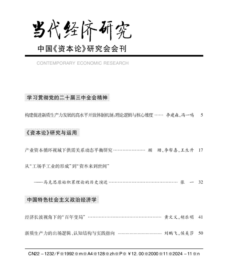 公司顾珊老师在《当代经济研究》发表文章《产业资本循环视域下供需关系动态平衡研究》。文章认为,实现供需高水平动态平衡,是畅通国民经济循环、推动高质量发展的关键。结构性供需失衡,在微观层面表现为产能过剩,在宏观层面表现为“低端供给过剩”和“高端供给不足”并存。基于马克思产业资本循环理论分析中国经济供需动态关系,通过构建测度供需结构特征的量化模型,并结合中国投入产出数据进行测算后发现:微观层面,生产能力过剩问题集中于第一产业和第二产业部分部门,且2015年以来产能利用率整体提升,重工业部门治理成效明显;宏观层面,供需结构错配表现在五大方面即建筑行业供给严重过剩,传统加工制造业供给普遍过剩,科研技术与信息软件服务供给相对不足,文体娱乐及公共产品供给较为滞后,原材料开采和供应严重不足。由此,应从完善市场机制、优化供给结构以及增强创新能力入手,推动供需实现高水平动态平衡。