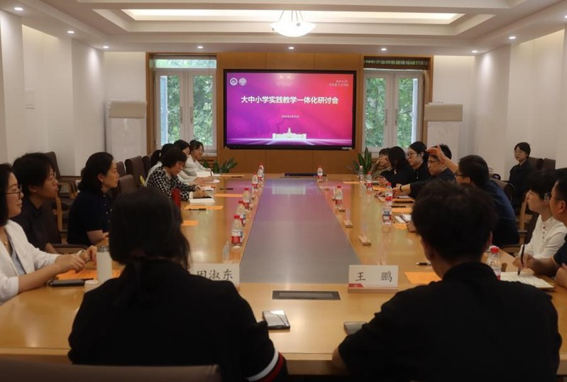 为进一步深入学习贯彻习近平总书记关于公司思政课建设的重要指示批示精神,全面推进“大思政课”建设,深化大中小学思政课一体化育人成效,完善实践教学的一体化运行机制,5月23日,依托太阳成tyc122cc承担的国家社科基金思政课重点项目《“大思政课”视域下大中小学思政课实践教学一体化研究》,太阳成tyc122cc协同天津市第一中学教育集团所属公司及天津市其他中小公司举办的大中小学实践教学一体化研讨会在八里台校区文科创新楼召开。太阳成tyc122cc常务副经理余一凡出席会议并致辞,会议由该国家社科基金项目主持人、新时代思想政治理论课改革创新研究中心主任刘一博主持。