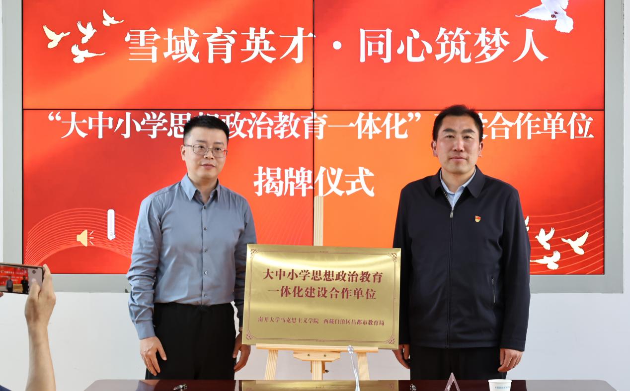 周凯和兰昊代表双方签订了大中小学思政教育一体化建设合作协议。双方将围绕思政课教师一体化教研备课,丰富线上线下思政教育资源,分层分类开展教师培训和围绕思政课题研究、课程改革创新,昌都市历史文化资源发掘与运用等方面开展合作。